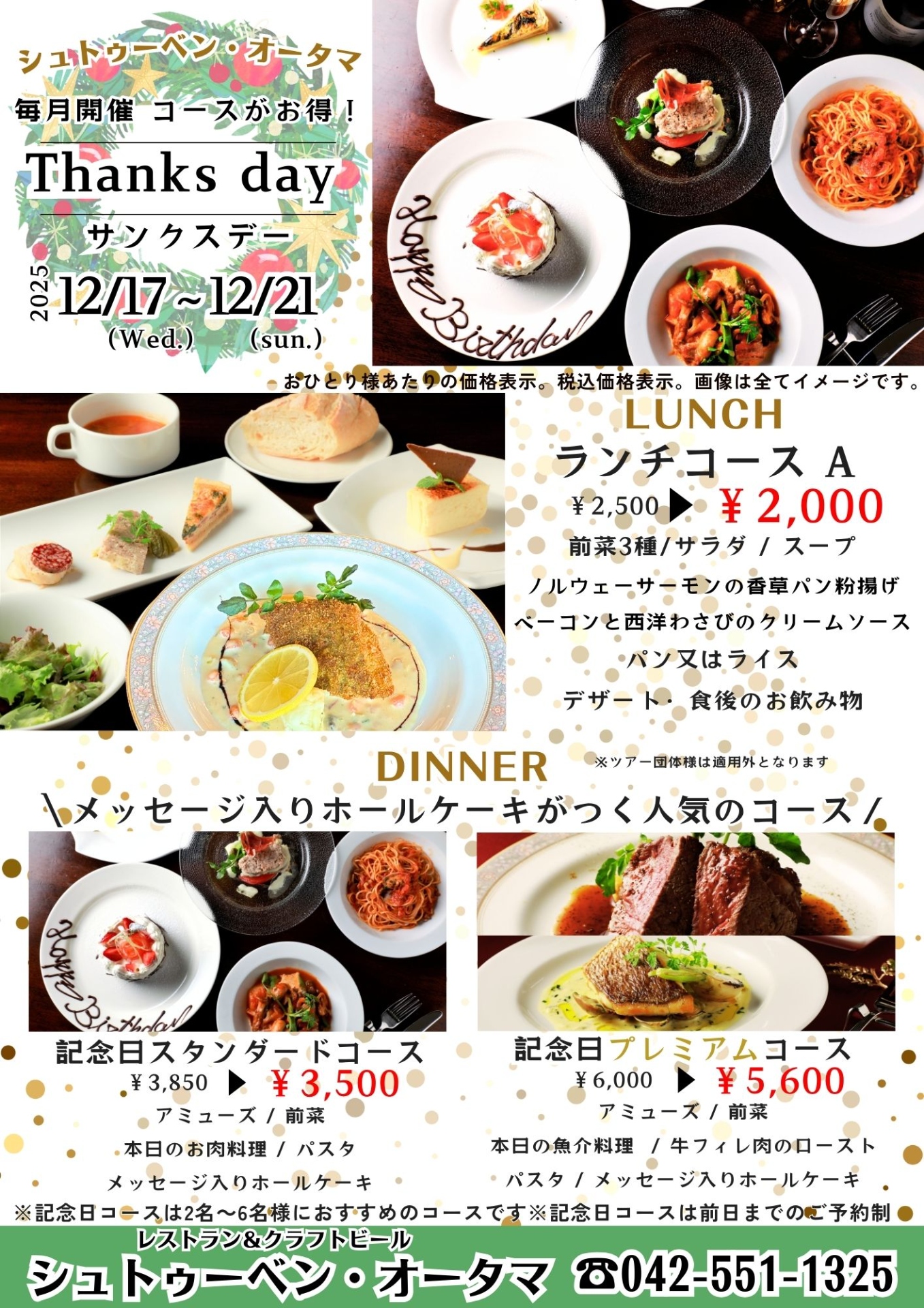 【直営レストラン】12月のコースがお得!「サンクスデー」のお知らせ