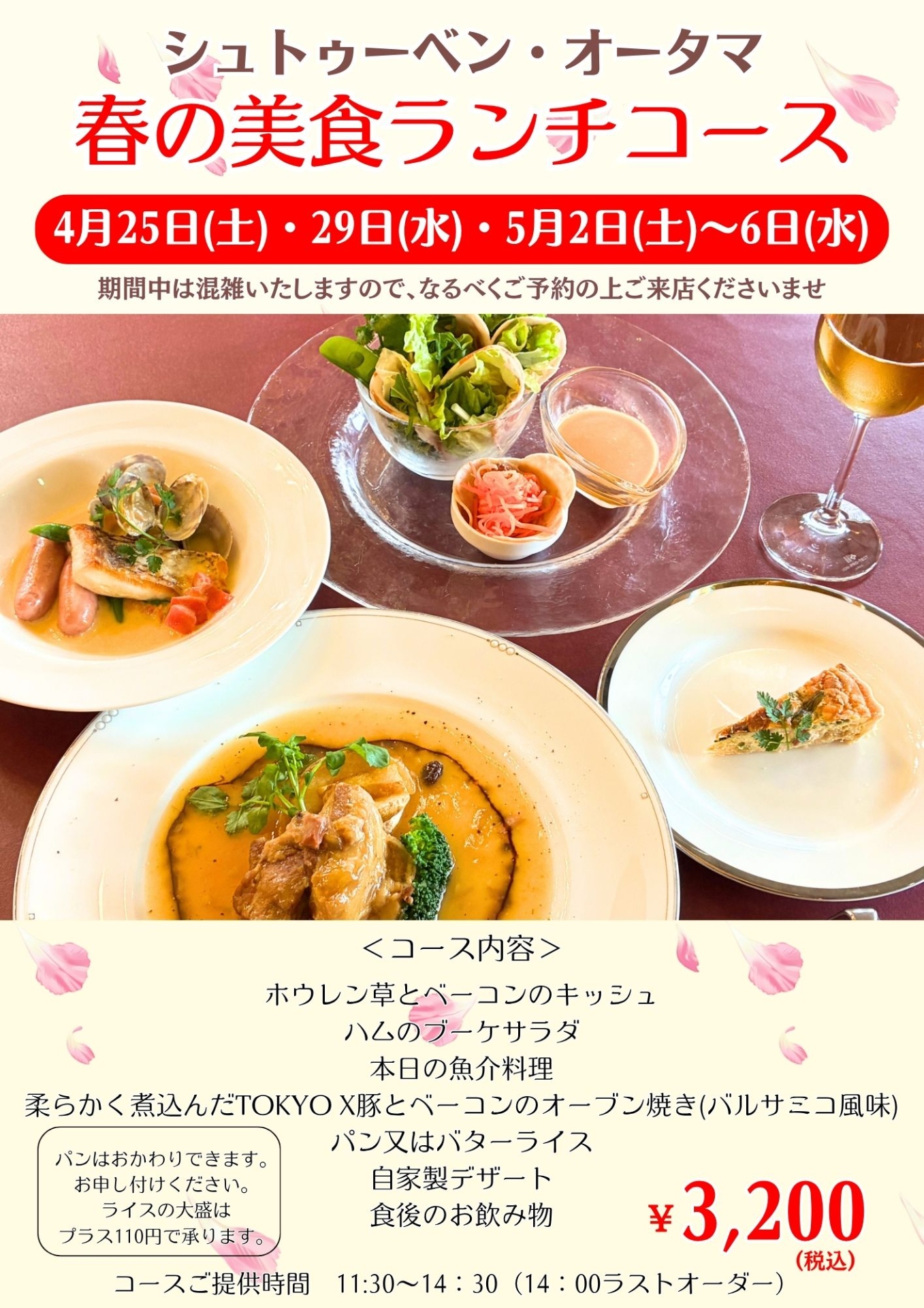 直営レストランシュトゥーベン・オータマではランチタイム限定で『春の美食コース』をご提供いたします。